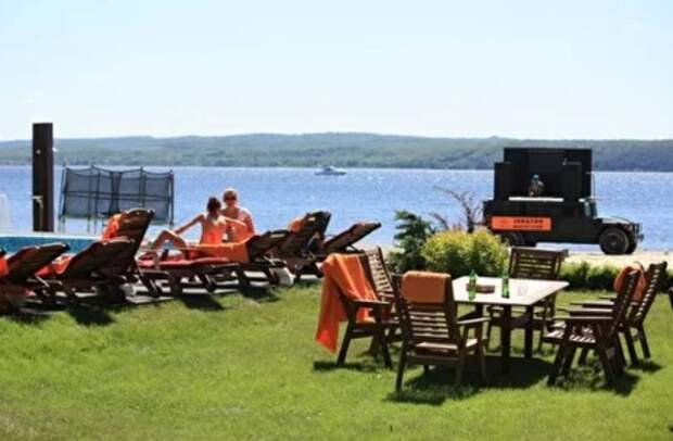 Судя по данным заведения, среди объектов базы есть дебаркадер, который используют в качестве отеля и банного комплекса, а также отдельные бунгало и спортивная площадка.